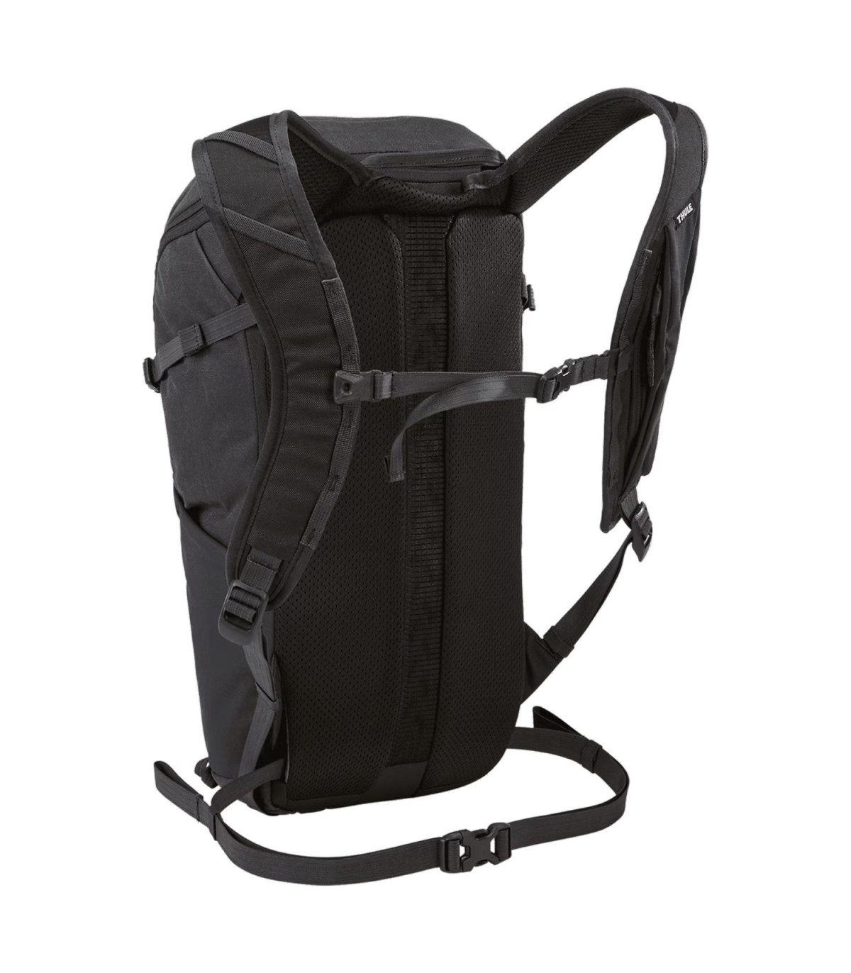 - Fija la carga al exterior de la mochila con las correas de ajuste laterales y el sistema de acoplamiento en cadena.