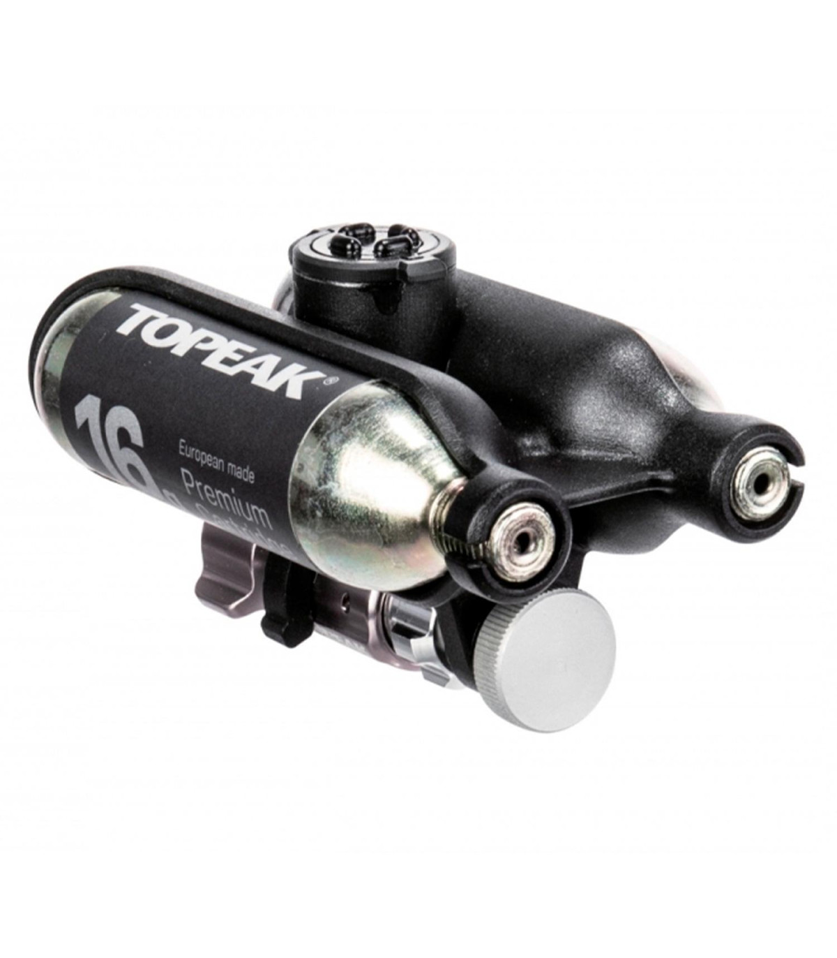 Se monta debajo de la jaula de la botella de agua Ninja con el soporte de jaula intercambiable o se usa solo con el soporte de marco. El CO2 FuelPack repara pinchazos e infla en un santiamén.