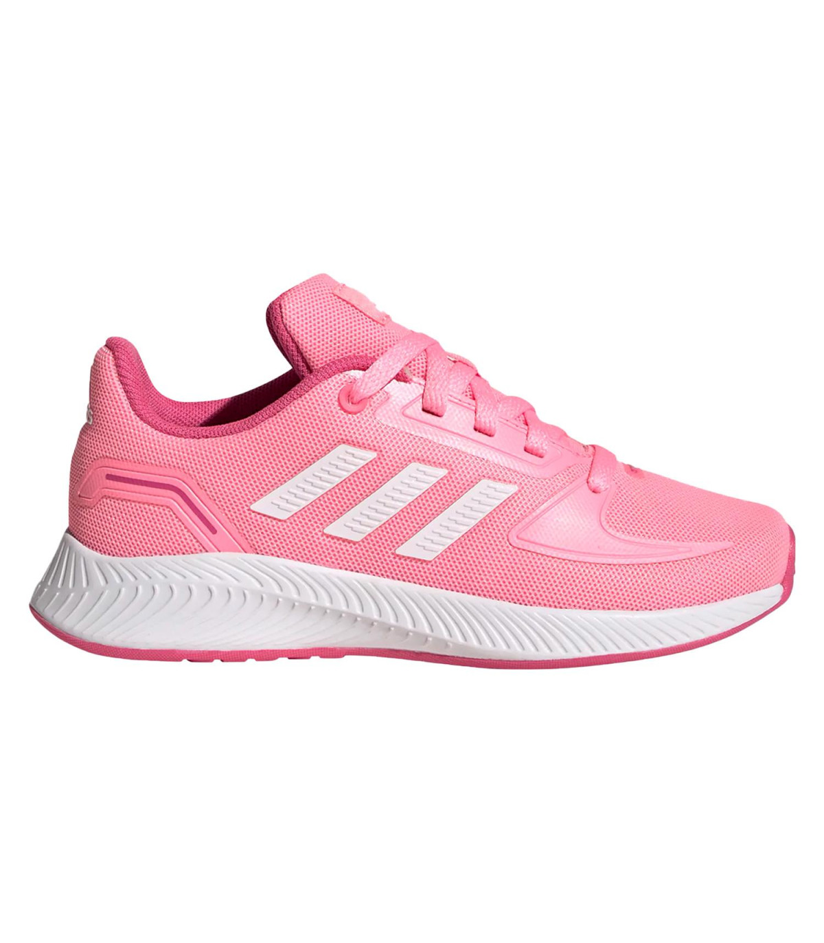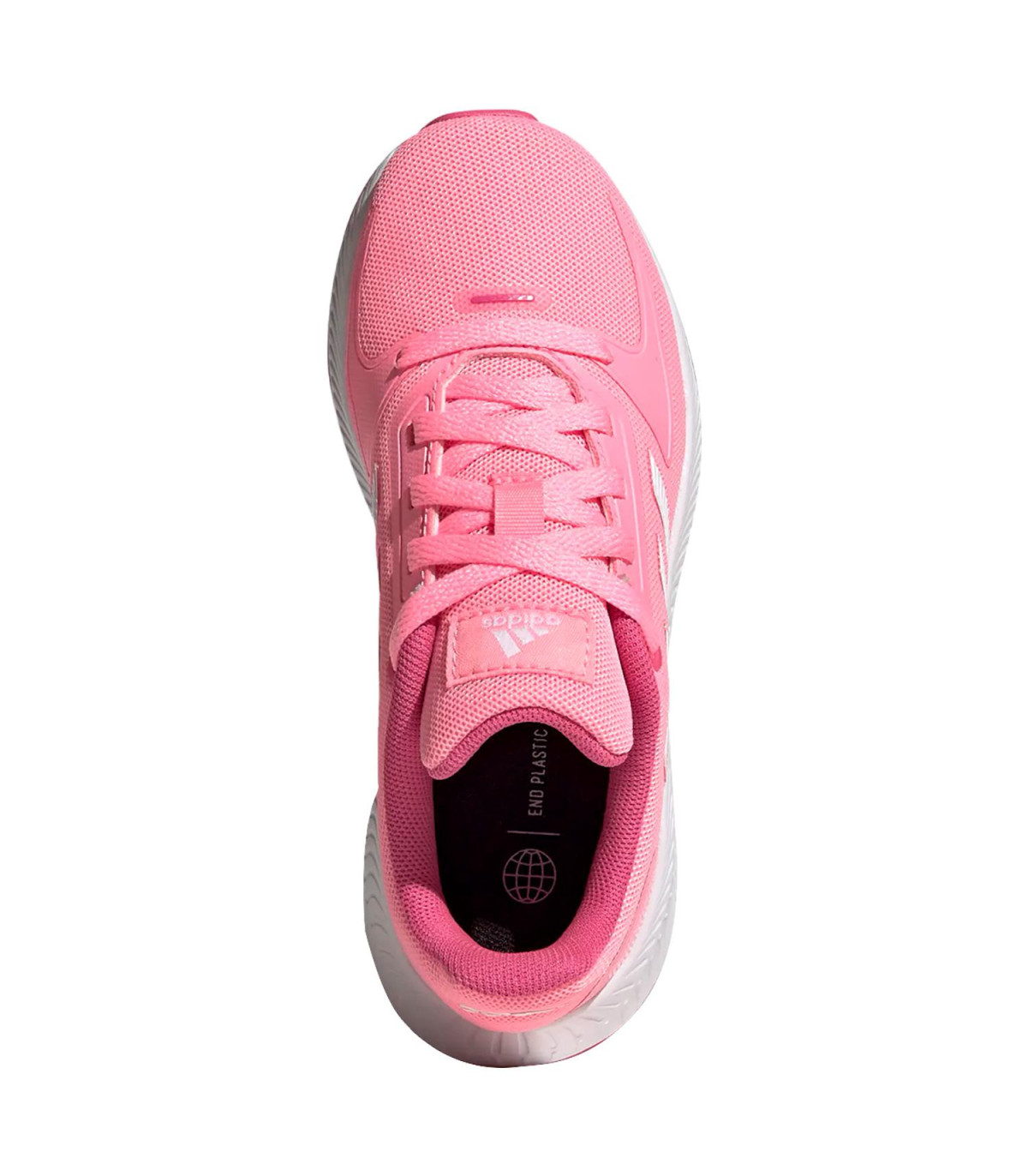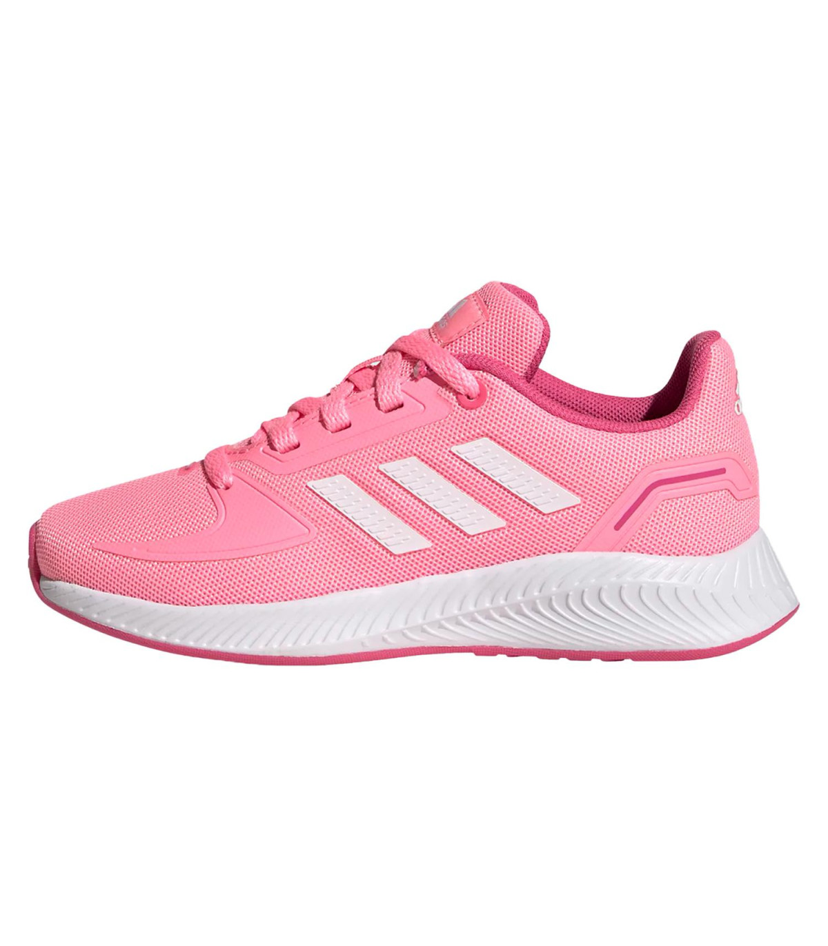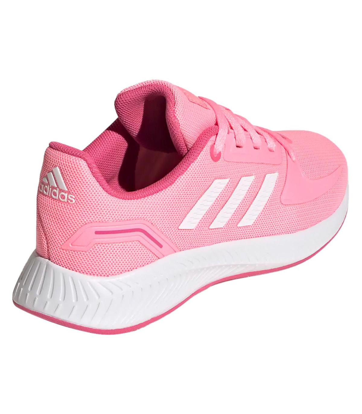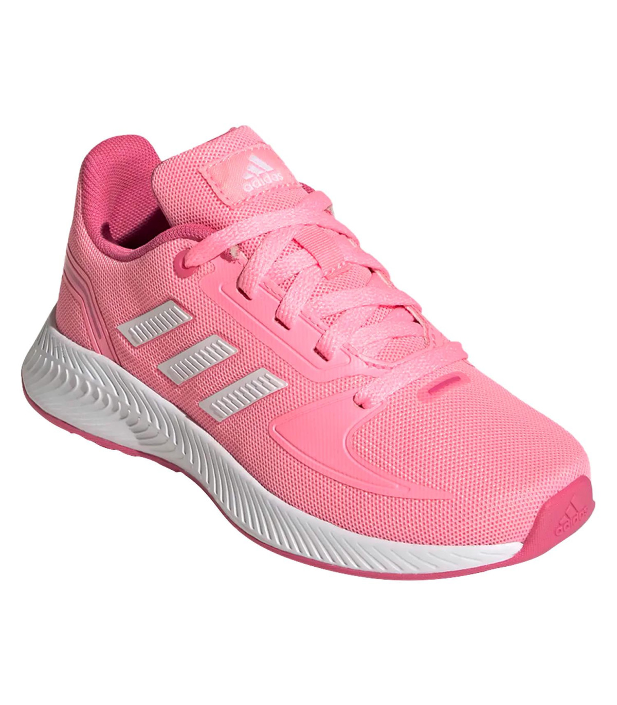 RUNFALCON 2.0 K es un calzado de uso diario para niña, con una diseño ligero con forro interno y externo textil, cuenta con una horma clásica, sistema de amarre de cordones, media suela de Eva y suela de caucho.